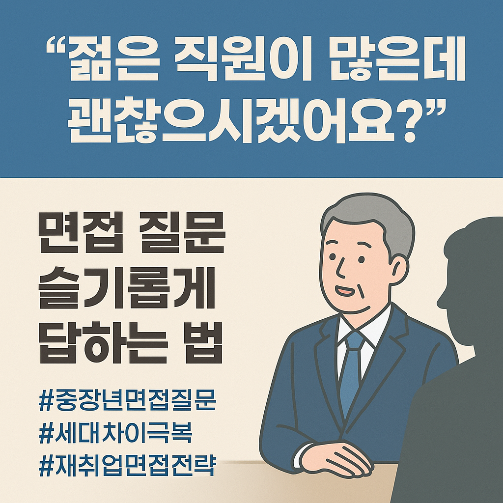 “젊은 직원이 많은데 괜찮으시겠어요?” 면접 질문에 슬기롭게 답하는 법 중장년층 구직자라면 한 번쯤은 들어봤을 법한 질문입니다. “우리 조직은 젊은 직원이 많은데 잘 어울릴 수 있으시겠어요?” 단순한 궁금증처럼 들릴 수 있지만, 사실 이 질문에는 조직 적응력과 커뮤니케이션 능력을 검증하려는 의도가 숨어 있습니다. ❓ 이 질문의 본질은 무엇일까? 기업은 나이 그 자체보다도 조직문화 적응과 팀워크에 미치는 영향을 중요하게 생각합니다. 특히 스타트업이나 IT업계처럼 빠르게 변화하는 환경에서는 연령보다 ‘유연성’, ‘소통력’, ‘배움에 대한 자세’를 더 예민하게 보기도 합니다. 💡 답변 전략: “나이는 숫자, 협..